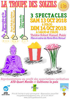 Les samedi 13 et dimanche 14 Octobre 2018 nos trois troupes d'adultes joueront pour les associations caritatives plaisiroises